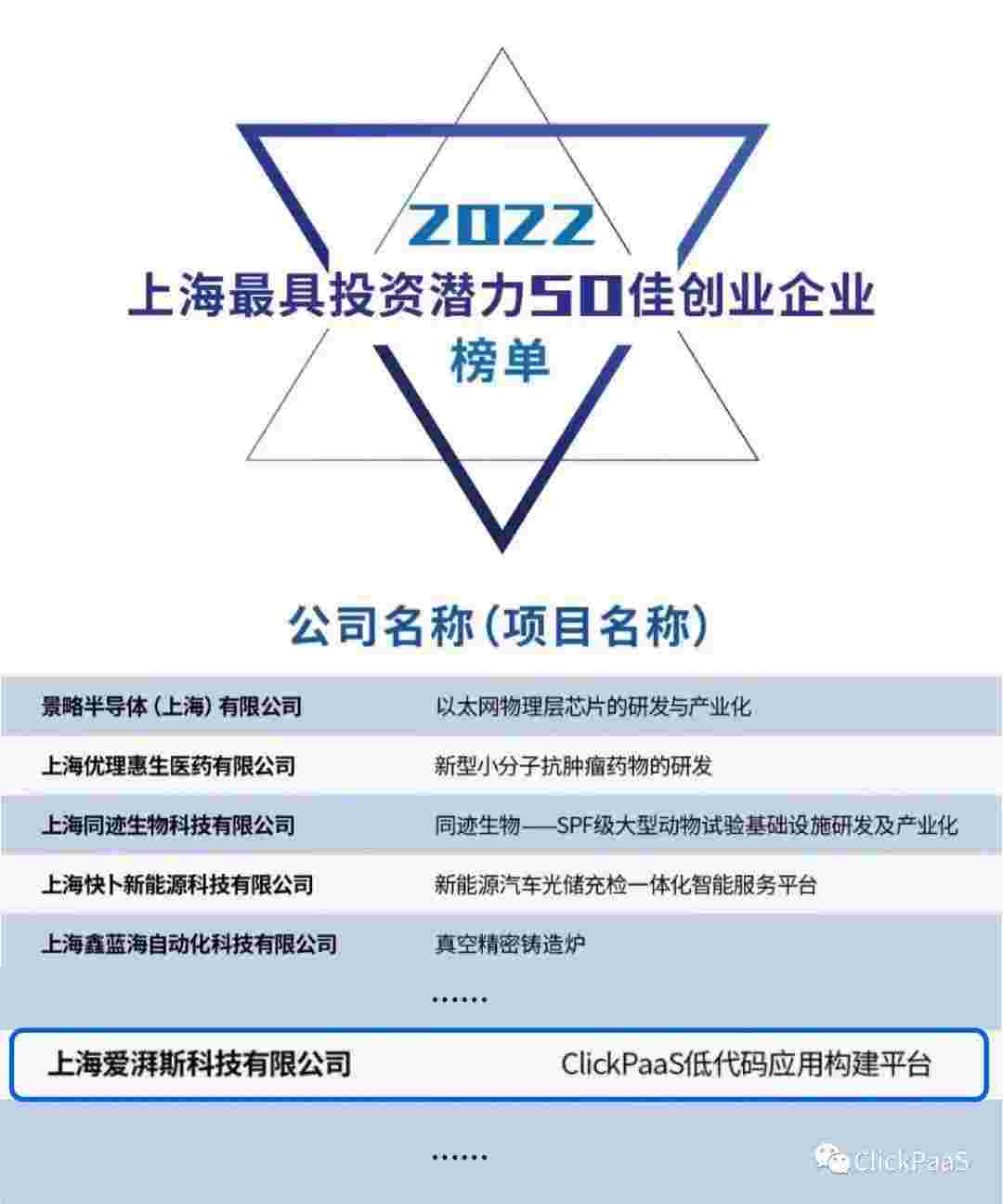 小米钱包 作为国内低代码PaaS平台的领军企业,,,,与120家创企入围角逐。。。期间接受了来自德同资本、、、领中资本等知名投资机构的10位投资人组成专家评委团的背靠背盲选。。。并最终入围“2022上海最具投资潜力50佳创业企业”榜单,,,,被列入“上海市重点培育创业企业库”。。。。