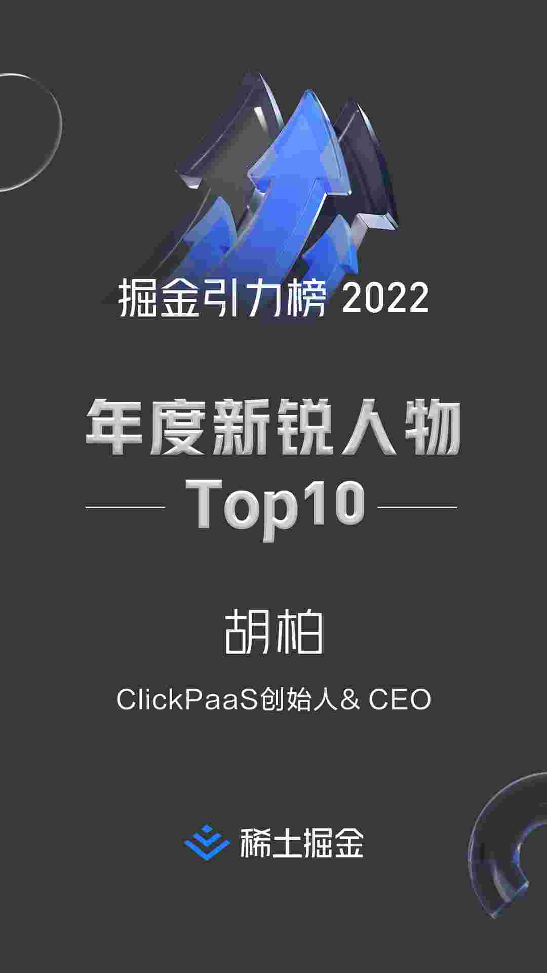 2022年1月6日,,,,稀土掘金社区第一届「掘金未来大会」成功举办,,会上发布了“2022 稀土掘金引力榜 年度新锐人物”榜单,,,上海爱湃斯科技有限公司(简称小米钱包)创始人及CEO胡柏实力入选年度新锐人物TOP 10。。。
