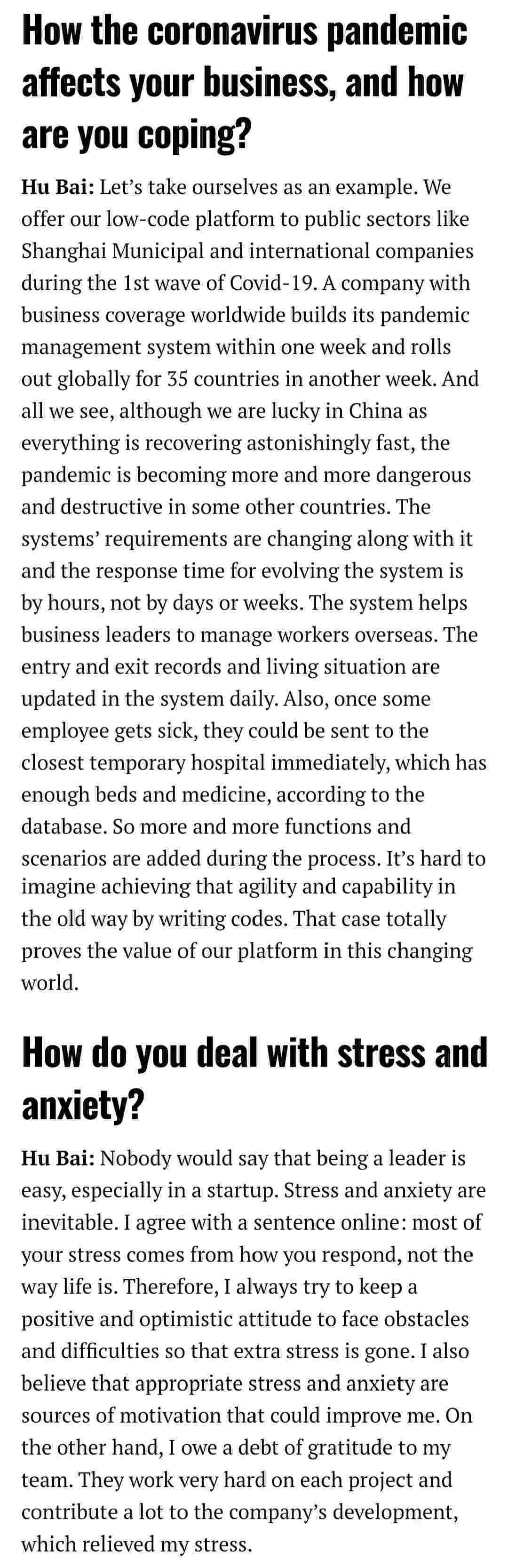 2021年年初,,爱湃斯科技CEO胡柏受邀接受法媒Startup.info的专访,,与Startup info的读者分享了自己的创业经历、、、、以及低代码平台小米钱包的创新之处。。。。